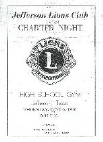 Click on the program at the left to see an on-line representation of the Jefferson Lions Club Charter Night Program in 1946 |