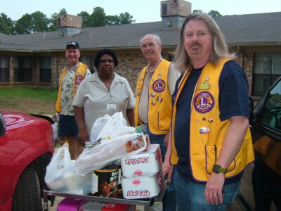 Because of your generosity, the Jefferson Lions Club was able to act quickly when a recent emergency situation arose in our community. As Hurricane Rita approached the Texas coast, the Galveston area was evacuated, and our local Pine Hill Nursing home took in approximately fifty nursing home residents from that area. Along with those evacuees came staff and family members, which left Pine Hill in a food crisis. While they could apply for, and hopefully eventually receive, help from FEMA or the Red Cross, they simply had no way to feed the evacuees in the short term.